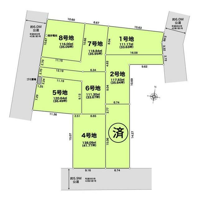 | 用途地域 | 1種低層 | 接道状況 | 西6.0m 公道 接面2.7m |